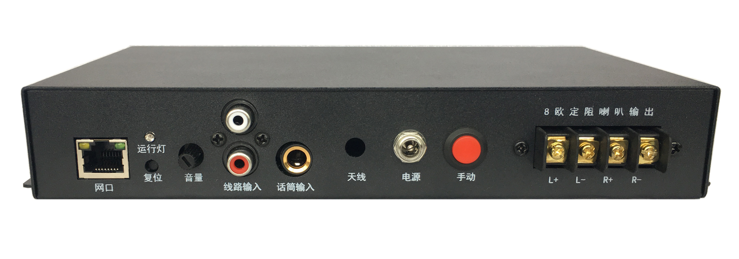 ◆內(nèi)置嵌入式網(wǎng)絡(luò)語(yǔ)音解碼模塊、2*50W/8Ω雙通道輸出功放,,驅(qū)動(dòng)外接音箱工作,設(shè)備運(yùn)行穩(wěn)定性高。